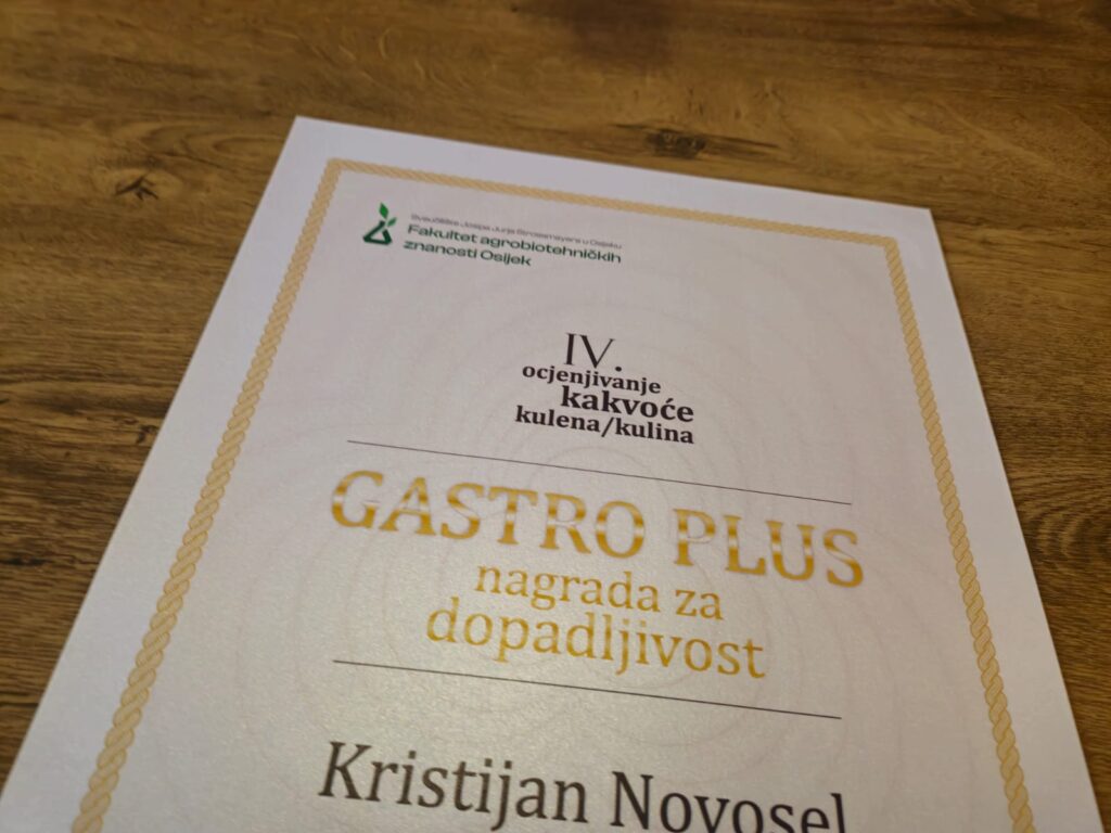 Na IV. ocjenjivanju kakvoće kulena/kulina, održanom 4. srpnja 2025. na Fakultetu agrobiotehničkih znanosti u Osijeku, OPG Novosel postigao je izniman uspjeh.